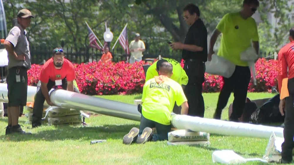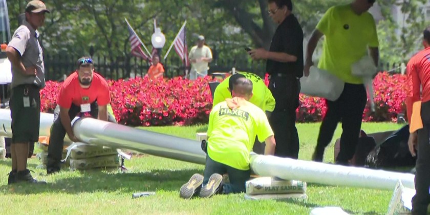 Massive new flag poles are being installed on the White House grounds, Washington, D.C., after U.S. President Donald Trump said they were desperately needed and he would pay for them himself.