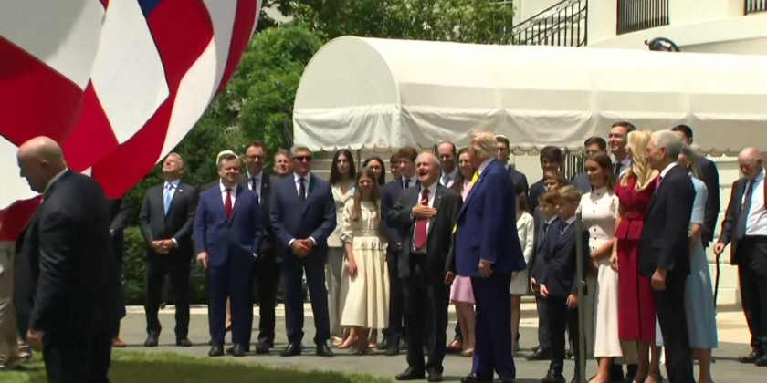 The placement of the two nearly 100-foot-tall flagpoles, one on the north lawn and one on the south lawn, began early Wednesday morning. The flags were raised around 11 a.m. local time. Trump said in a social media post that "Hopefully, they will proudly stand at both sides of the White House for many years to come!"