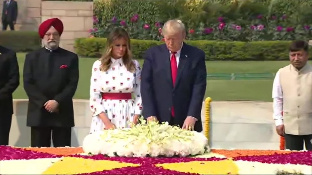 US President Donald Trump paid his respects to iconic Indian independence leader Mohandas Gandhi in New Delhi on Tuesday during his two-day visit to India. The Trumps laid a wreath at Gandhi's memorial after a reception at the president's residence in New Delhi, where he was greeted by a military band, Indian Prime Minister Narendra Modi and the country's president, Ram Nath Kovind. The two-day visit began on Monday when Trump arrived in Modi's home city of Ahmedabad and attended a massive rally at the country's largest cricket stadium.