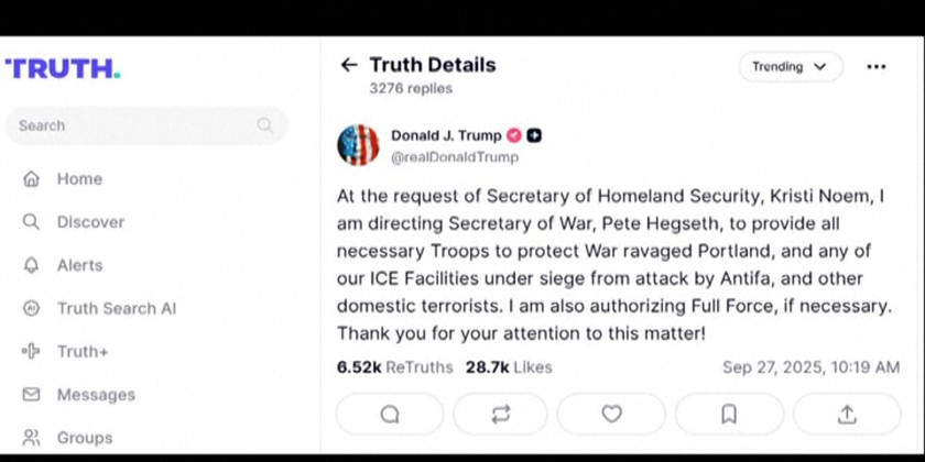 U.S. President Donald Trump said Saturday that he will deploy troops to Portland, the state of Oregon, to handle "domestic terrorists." He authorized the deployment of troops in the northwestern US city of Portland and at Immigration and Customs Enforcement (ICE) facilities, extending his contentious domestic use of the military.