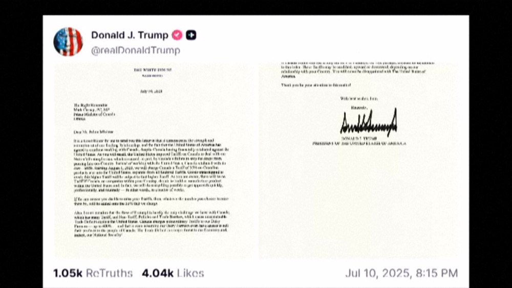 Trump says Canada to face 35 percent tariff rate starting Aug 1
