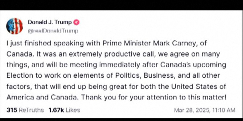 Carney was sworn in as Canada's new prime minister on March 14, replacing Justin Trudeau who led Canada for nearly a decade. This was the first call between Trump and Carney since Carney took office.
