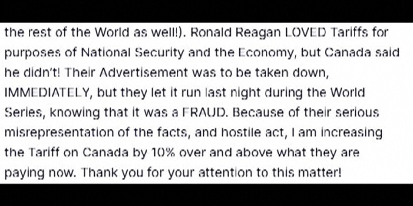 U.S. President Donald Trump said on Saturday that he plans to increase tariffs on goods from Canada by an extra 10 percent because of an anti-tariff TV advertisement. The ad, aired by the Canadian province of Ontario, featured former President Ronald Reagan criticizing U.S. tariffs.