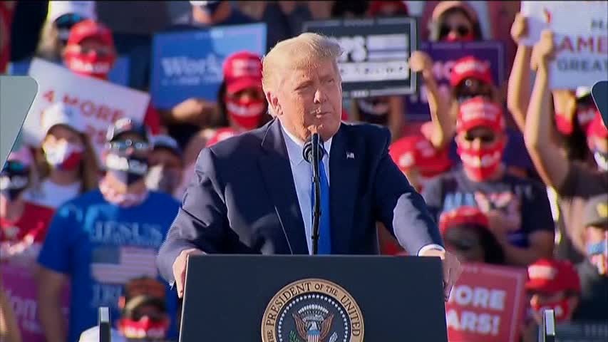 US President Donald Trump held a rally in Carson City, Nevada on Sunday, on the latest stop of his campaign trail in the run up to November's Presidential election. The rally drew thousands of supporters who sat elbow to elbow, cheering Trump and booing his Democrat rival Joe Biden and the press.