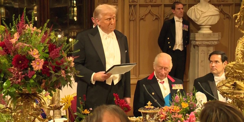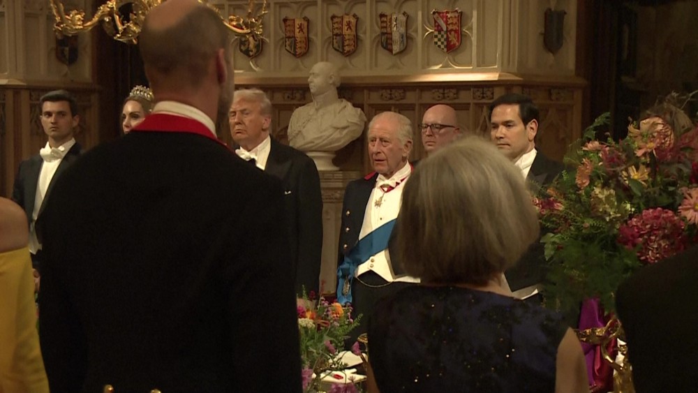 Donald Trump was treated to a sumptuous royal state banquet in Windsor Castle Wednesday, rounding off the US president's first full day of a historic second state visit to Britain. Before some 160 guests at the start of the lavish event, designed to play into the mercurial American leader's love of pomp and pageantry, King Charles III praised what he called Trump's "personal commitment" to seeking peace.