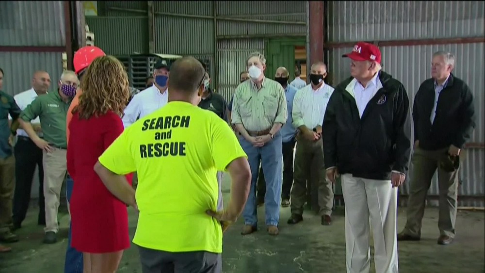 US President Donald Trump makes a visit to a warehouse in Lake Charles, Louisiana, being used as a depot to hand out food and water after Hurricane Laura hit the southern state. At least 14 people were killed after Laura slammed into the states of Louisiana and Texas, authorities and local media said Friday.