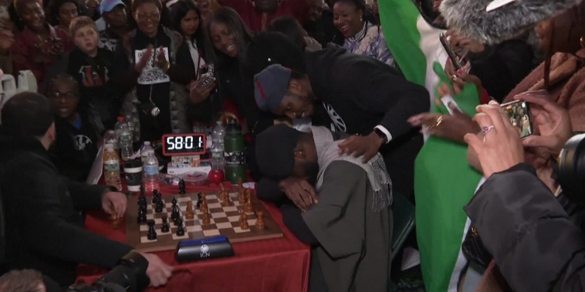 His supporters surrounded him in New York City's Times Square, offering encouragement throughout the night to keep his spirits high. Onakoya seeks to raise one million dollars to provide chess lessons and programs for underprivileged children in Nigeria.