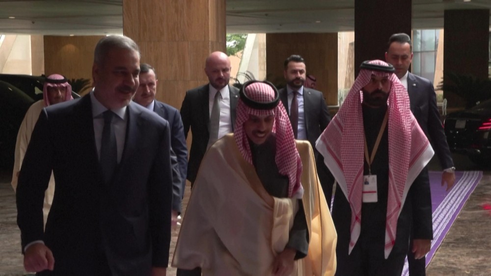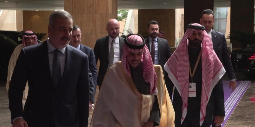 Syria's new leader Ahmed al-Sharaa is pushing for sanctions relief. His administration is represented at the Riyadh talks by Foreign Minister Asaad al-Shaibani.