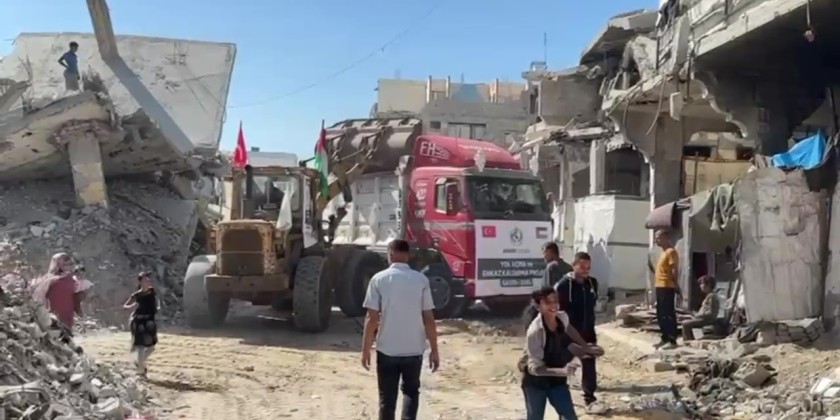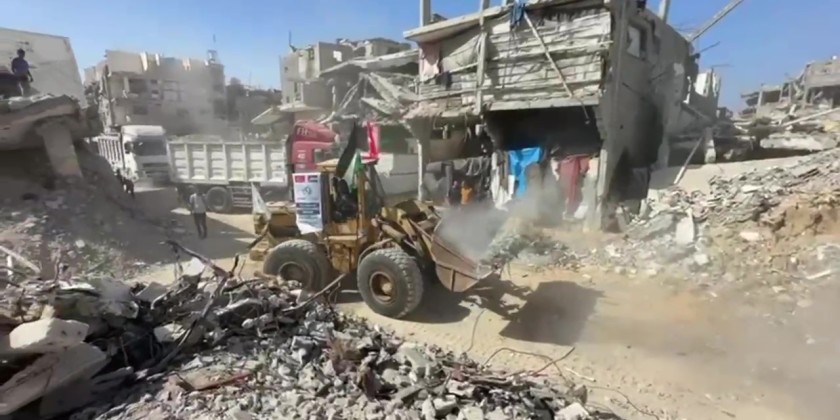 The Turkish foundation AKMER – Aksa İlim ve Davet Merkezi has begun implementing a project to open roads and clear debris in the city of Khan Younis in the southern Gaza Strip on Saturday.