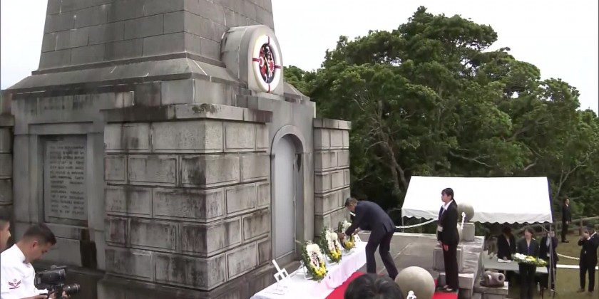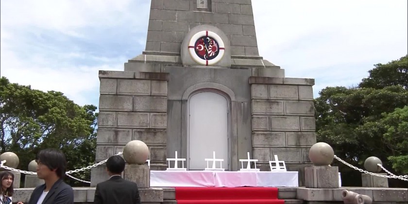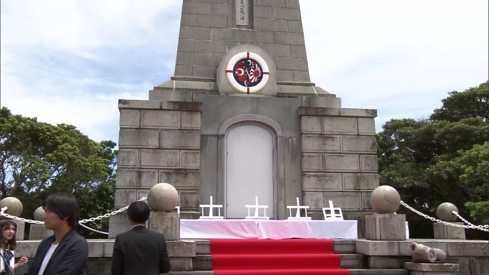 The Ertugrul, a naval sailing ship, sank off Kushimoto Town in 1890. More than 500 on board died. A memorial ceremony was held in front of a cenotaph for the incident on a hill overseeing the sinking site on Monday. About 130 people placed flowers at the memorial and offered a silent prayer.