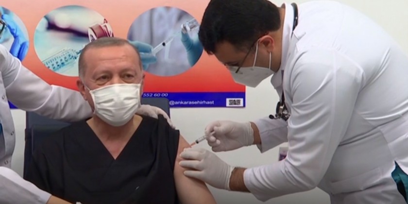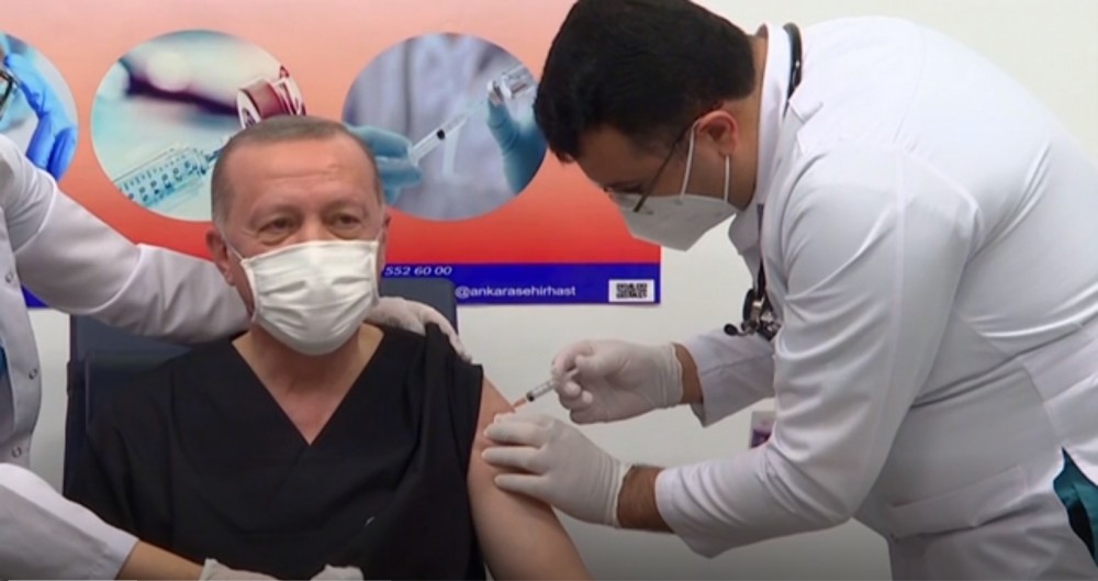 Turkish President Erdogan has received the coronavirus vaccine produced by China's Sinovac company in a bid to set an example and encourage others. before leaving the hospital, he called on other political leaders and legislators to get inoculated to set an example.