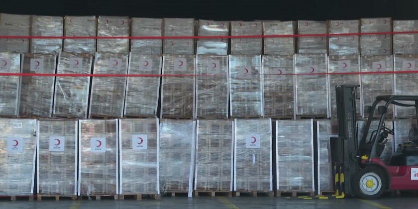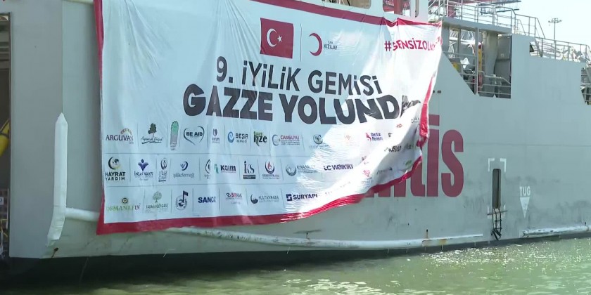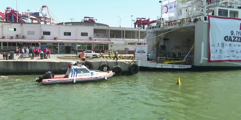 The materials include food, sleeping bags, baby supplies and flour provided by the Turkish Red Crescent. The aid materials will be unloaded at the port and transported to the Rafah Border Crossing, will be handed to the Palestine Red Crescent.