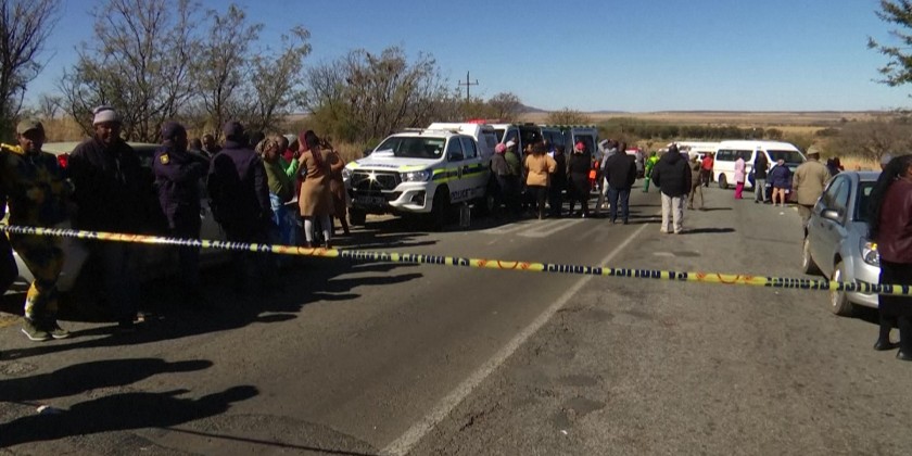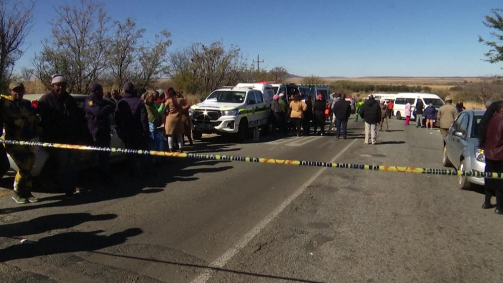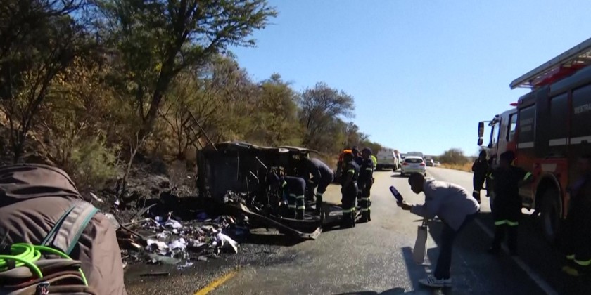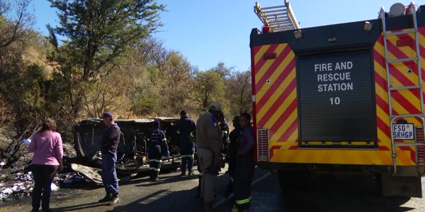 The driver of the minibus was also killed and seven other children were rushed to hospital. Police were investigating what happened but it appeared that the minibus was struck from behind by a small pick-up truck, causing it to overturn and catch fire. Many South African parents have to rely on private minibuses to get their children to school.
