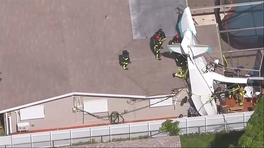 A small plane crashed onto the roof of a residential building in the city of Miramar outside Miami on Monday morning. A spokesperson for Miramar police says two people in the plane died in the crash.