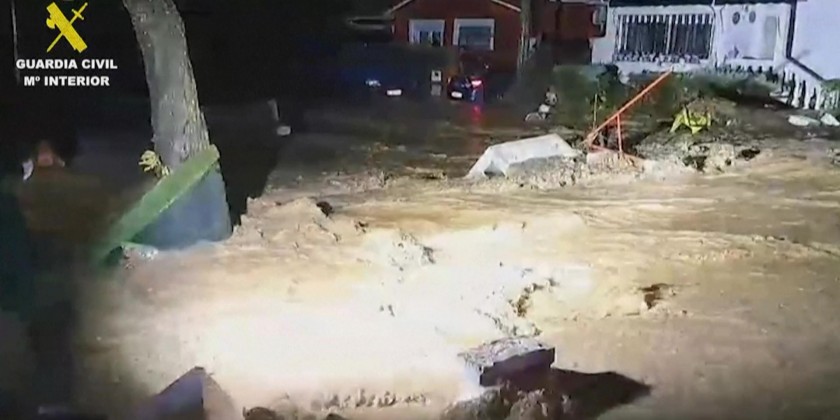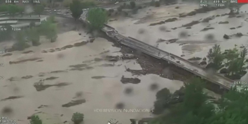 Several bridges collapsed in Aldea del Fresno and torrents of water swept away many cars. The heavy rainfall eased on Monday morning. Spanish Prime Minister Pedro Sanchez thanked emergency services for their work and urged people to "continue to behave with caution". The torrential weather comes after Spain endured an intense heatwave and persistent high temperatures in August.