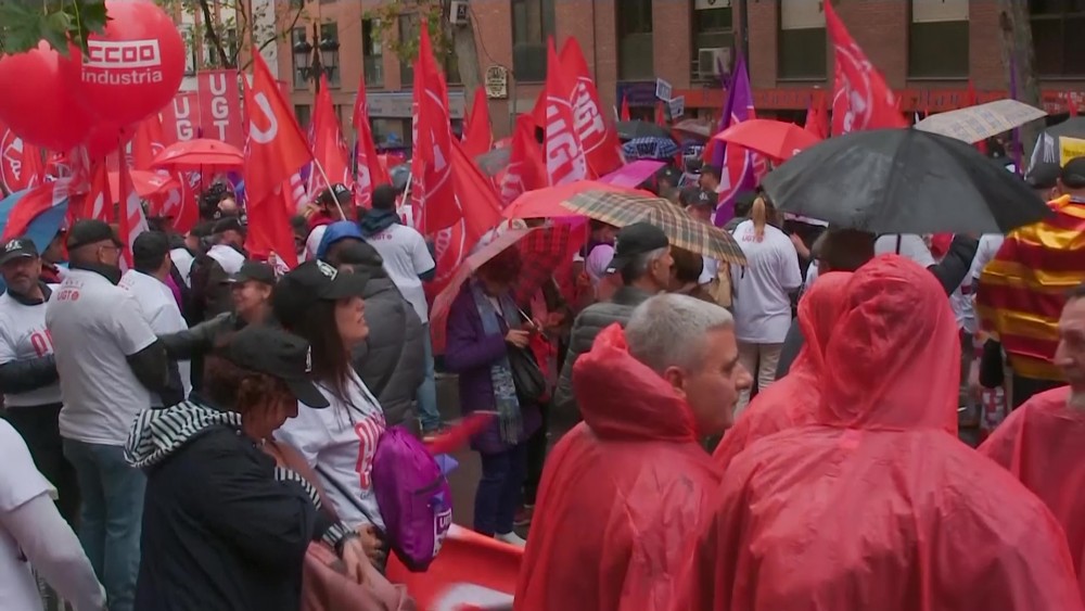 Thousands of workers rallied in Madrid on Thursday in a protest called by Spain's labor unions to demand higher wages to combat the higher prices driven up by global inflation. Spain's two major unions marched through the capital.