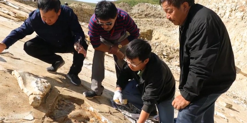 According to local authorities, two well-preserved dinosaur fossils dating back approximately 130 million years were recently unearthed in north China's Hebei Province. Both of the discoveries were herbivorous dinosaurs. Measuring about 5 meters in length, the stegosaurus fossil is nearly complete at the Fengning fossil conservation research center.