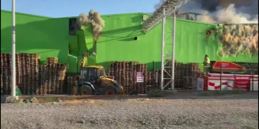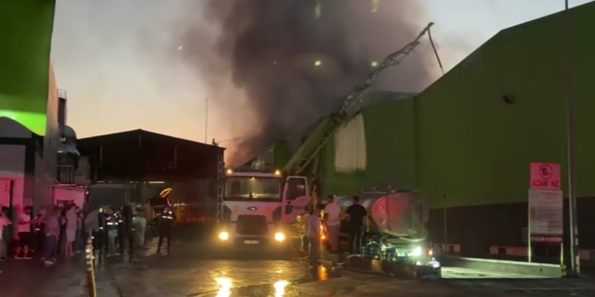 A fire broke out in the shipment section of a dairy products factory in Gönen, Balıkesir, spreading quickly to the storage area. The facility was evacuated as flames engulfed a large portion of the building, including the roof. Firefighters and forestry teams worked for hours to control the blaze.