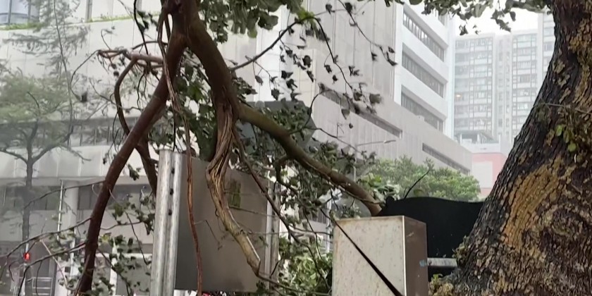 Fallen trees and other debris scattered across Hong Kong as Typhooon Wipha batters the city. The weather observatory issued its highest tropical cyclone warning ahead of Wipha's arrival, with authorities cancelling classes and grounding hundreds of flights. Huge waves were spotted off the eastern coast of Hong Kong Island.
