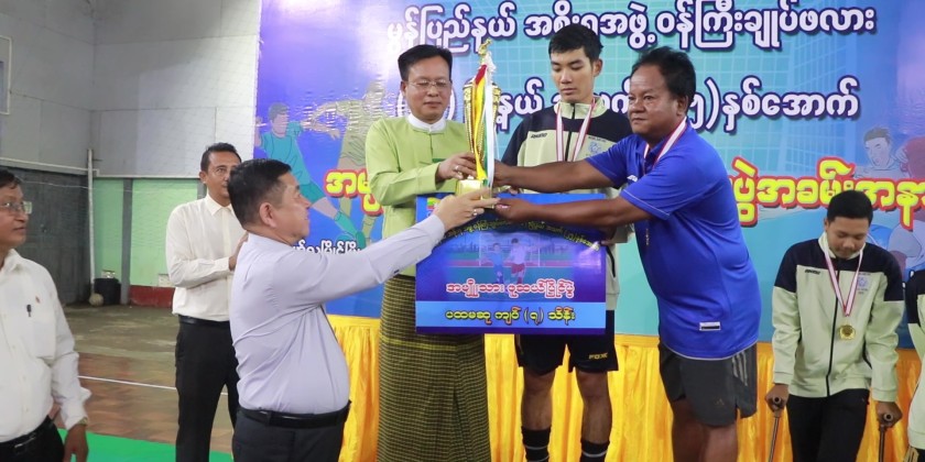 2025 Mon State Chief Minister’s Cup 10-Township U-25 Men Futsal Final Match and Award Presenting Ceremony was held at the Mawlamyaing University on 24th July with the attendance of Chief Minister U Aung Kyi Thein. The Chief Minister, state ministers and officials enjoyed the final match between Kyike Hto Township Team and Mawlamyaing Township Team.
