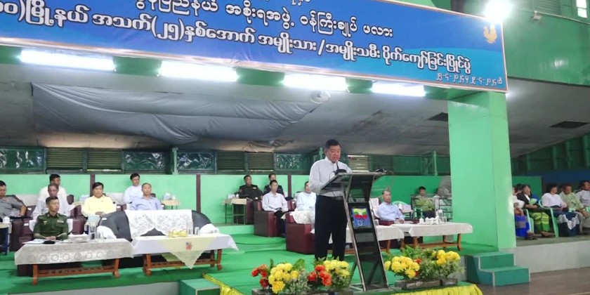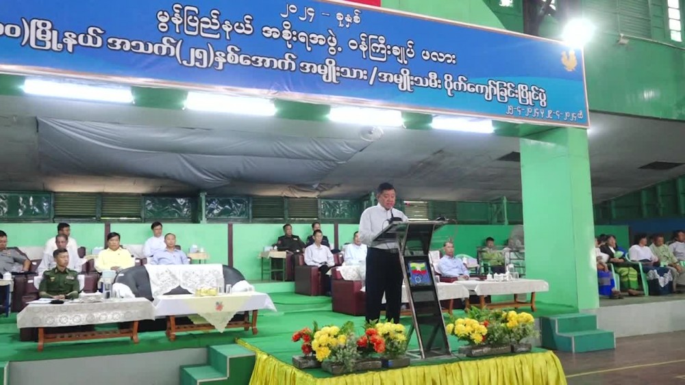 First, the Chief Minister U Aung Kyi Thein gave words of encouragement for the athletes, clarified the objectives of organizing 10 Townships U-25 Men and Women Sepaktakraw competition and gave necessary instructions to the athletes, judges and referees.