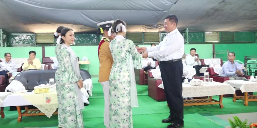 After reciting sports vows by the contestant teams, Chief Minister provided cash of honor to the drum and bugle group and signpost bearers and watched that men triple event between Mawlamyaing Township team and Mudon Township team.