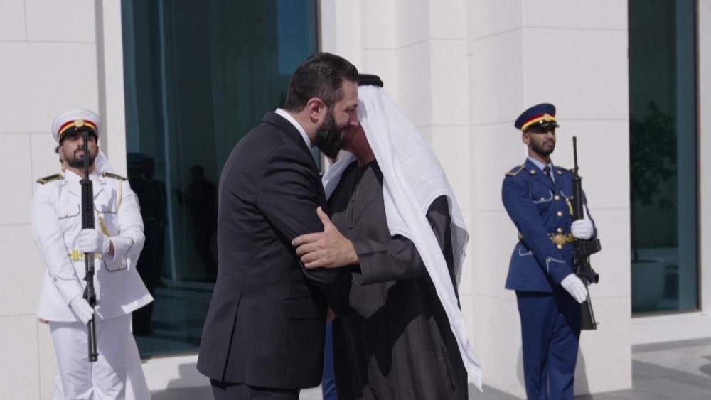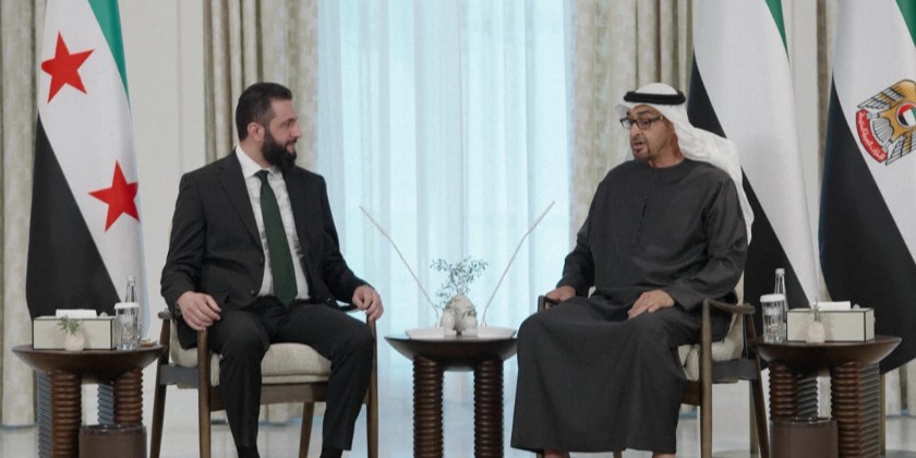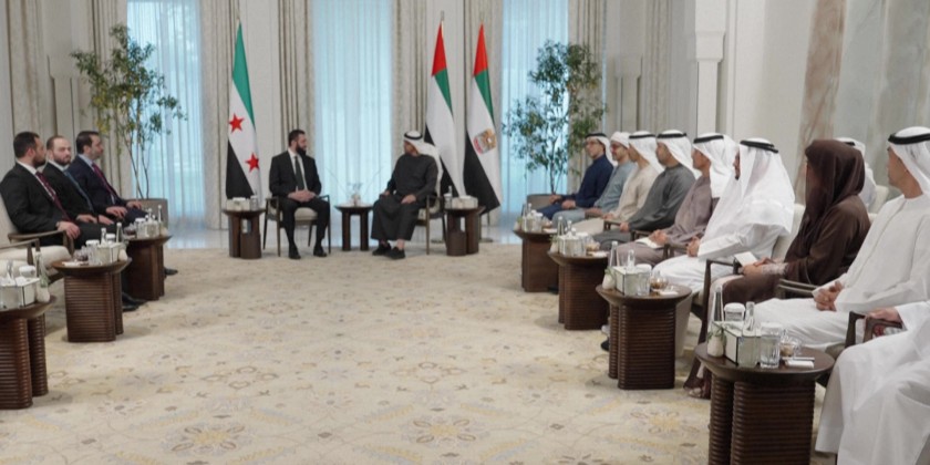 The statement came during his meeting at Al Shati Palace in Abu Dhabi with visiting Syrian leader. The UAE president welcomed the leader and wished him success in leading Syria through the next phase, expressing hope that the Syrian people would realize their aspirations for development, security, and stability.