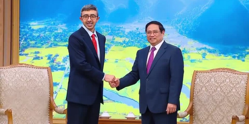 At a reception hosted by Vietnamese Prime Minister Pham Minh Chinh in Hanoi on Wednesday, the UAE Foreign Minister proposed that the two countries strengthen cooperation in such important fields as renewable energy, sustainable development, environmental protection, and people-to-people exchanges. The Vietnamese Prime Minister called on the two sides to complete negotiations for the Vietnam-UAE Comprehensive Economic Partnership Agreement (CEPA) as soon as possible.