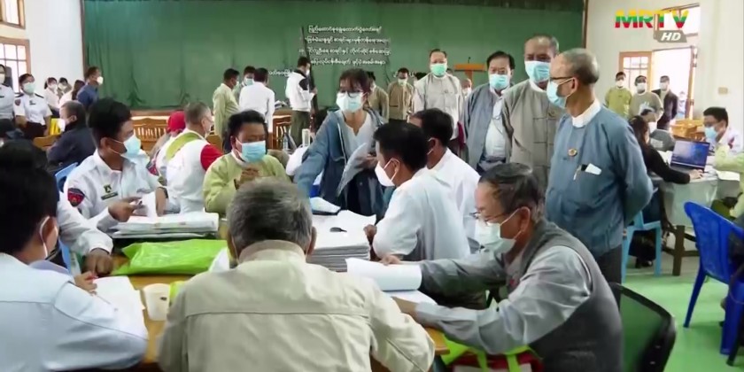 First, UEC member U Than Tun made an opening speech and the UEC members and participants inspected the work processes of respective ward/ village-tract officials.