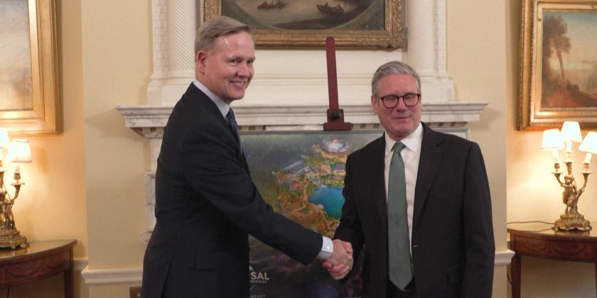 UK Prime Minister Keir Starmer and Mike Cavanagh, President of the Comcast Corporation, met at Downing Street to close the deal on a new Universal theme park in Bedfordshire, England.