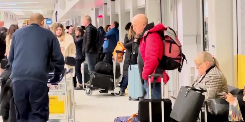 Much of Britain came to a halt on Tuesday as a result of widespread travel disruption caused by a combination of cold weather and strikes on the railways.
