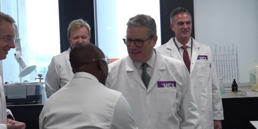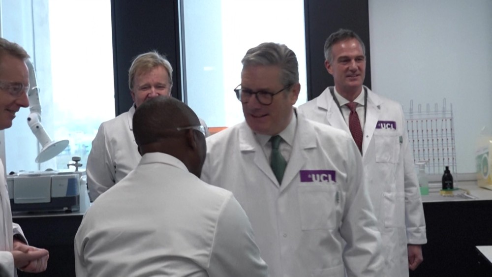 UK Prime Minister Keir Starmer met with researchers and professors during a visit to the Manufacturing Futures Lab at University College London in Stratford. Starmer says "Britain will be one of the great AI superpowers" as he lays out his vision to harness the power of artificial intelligence to boost the country's flagging economy.