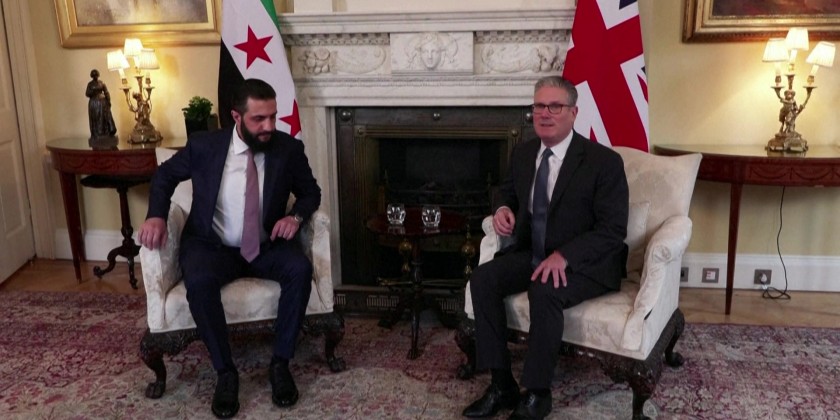 UK Prime Minister Keir Starmer welcomed Ahmed al-Sharaa, the President of Syria, to 10 Downing Street in London as part of a diplomatic meeting focused on rebuilding relations between the two countries.