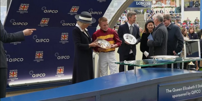 The King's horse finished 10th in the QIPCO British Champions Sprint Stakes earlier in the afternoon. The queen consort has long had a passion for horses and is president of the Ebony Horse Club charity.