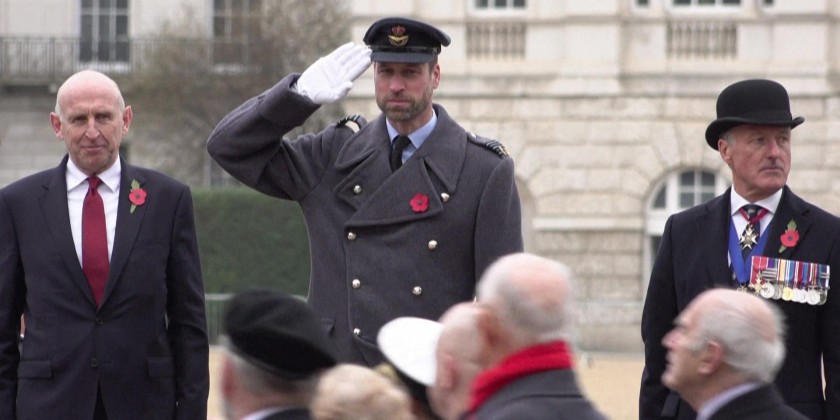 Britain's King Charles III led the Remembrance Sunday ceremony at the Cenotaph war memorial in London. Watching from a balcony, Catherine, Princess of Wales, observes as King Charles III, Prince William, and Prime Minister Keir Starmer lay wreaths in honor of Britain's fallen soldiers.