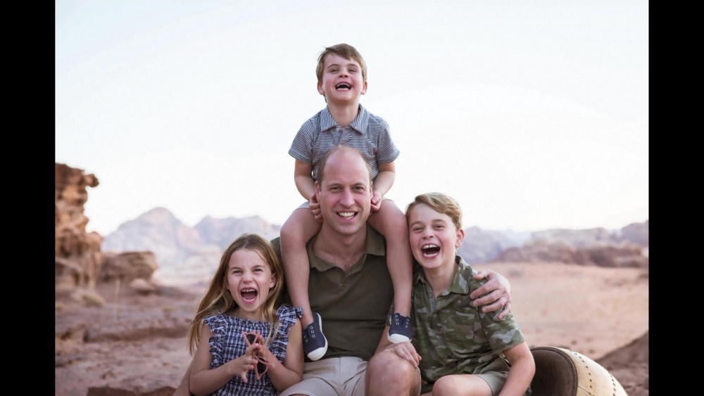 To mark Father's Day in the UK on Sunday, the Duke and Duchess of Cambridge shared a new photograph of the Duke and his children, Prince George, Princess Charlotte and Prince Louis. The photograph was taken in Jordan in the Autumn of 2021.