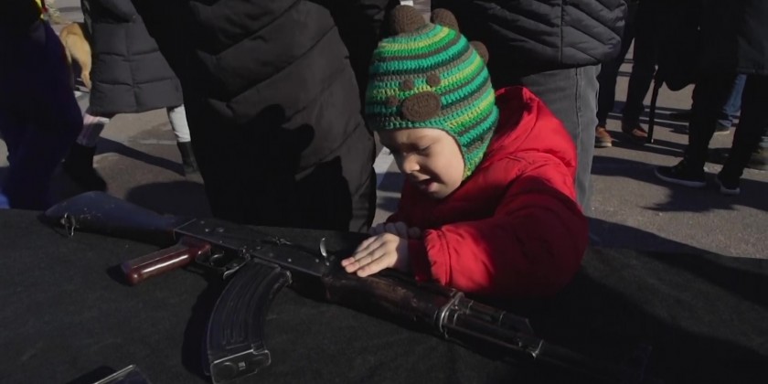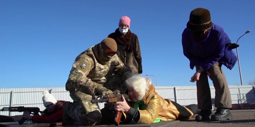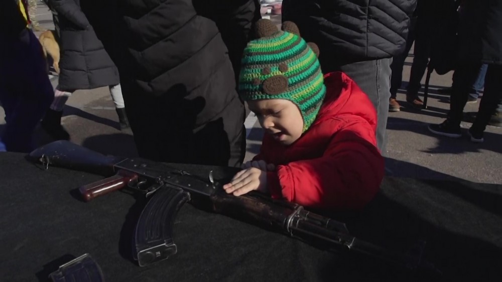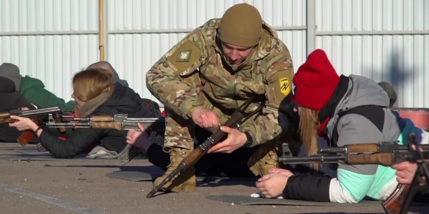 The battalion, part of Ukraine's National Guard, trained residents to assemble and dissemble a gun, to load ammunition and aim at targets. Russia denies it intends to invade but has massed well over 100,000 troops near the Ukrainian border and has sent troops to exercises in neighboring Belarus, encircling Ukraine on three sides.