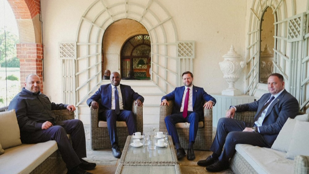 Ukrainian and European officials have met US Vice President JD Vance in Britain, apparently to convey their position on a ceasefire in Ukraine.