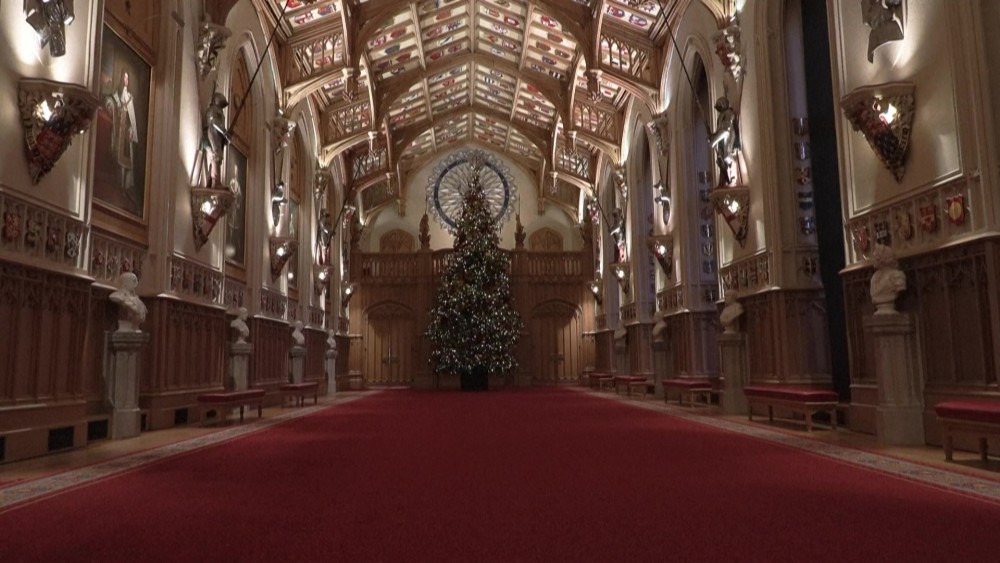 Britain's royal residence Windsor Castle, the world's largest occupied castle, unveils its Christmas decorations featuring a giant 20-foot living fir tree that will be replanted in the new year. The rooms featuring the decorations will be open to visitors and will be taken down on January 6 as per tradition.