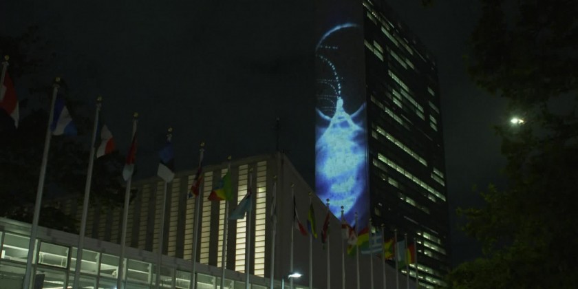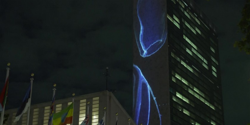The United Nations headquarters in New York lit up on Wednesday night with images of marine species in an effort to symbolize the relationship between humans and the world's rich biodiversity.