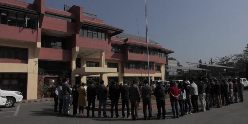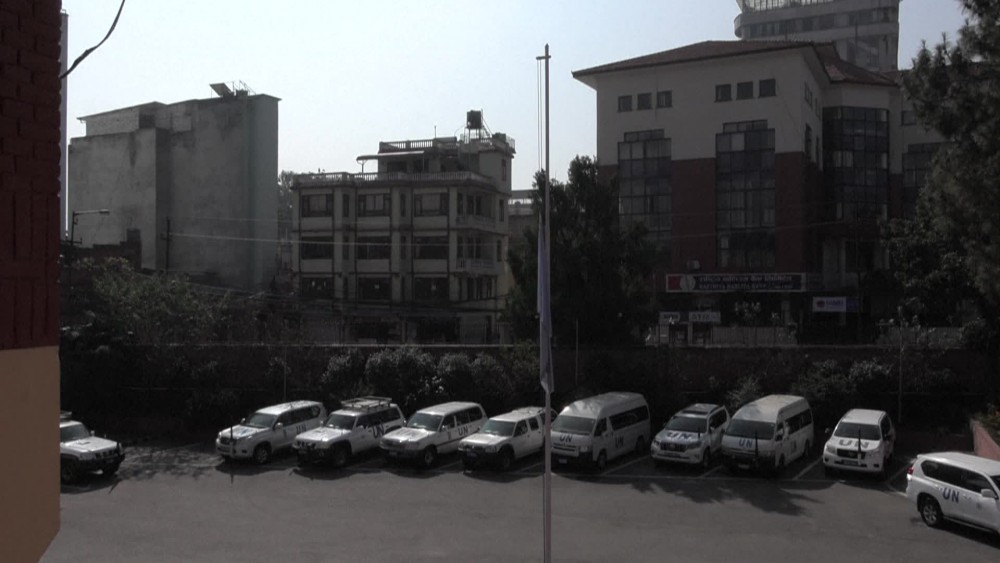 Flags flew at half-mast at United Nations compounds across Asia on Monday. The United Nations flag flies at half-mast in Nepal, as staff observed a minute's silence in memory of colleagues killed in Gaza during the Israel-Hamas conflict.