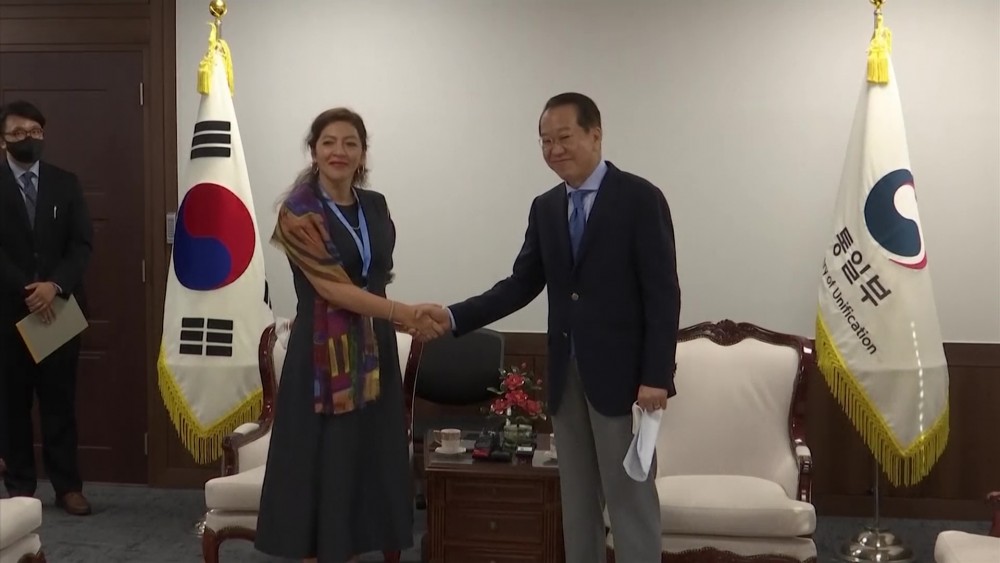 The U.N. special rapporteur on North Korea’s human rights met with South Korean Unification minister Kwon Young-se in Seoul on Friday. It was Elizabeth Salmón's first visit to South Korea since her appointment last month. The trip that started on Aug. 27 has seen her meet with top South Korean officials, activists and North Korean defectors.