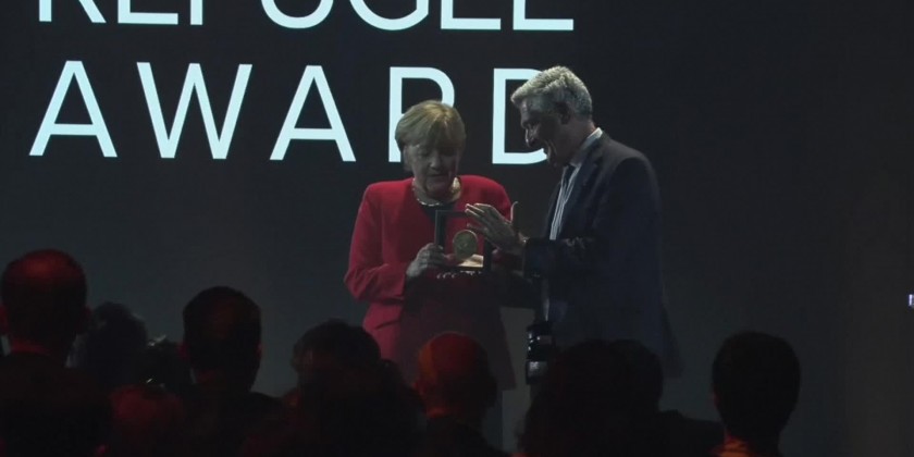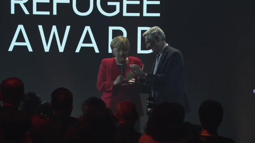 Merkel said she would donate the $150,000 prize for the UNHCR’s Nansen Refugee Award to four other regional laureates who were also recognized at a Geneva ceremony.