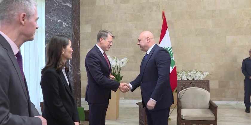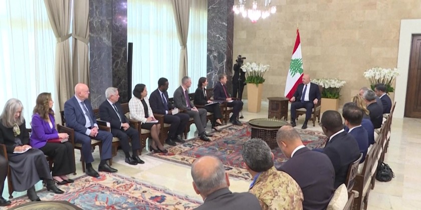 A delegation from the UN Security Council along with US envoy Morgan Ortagus meet with Lebanon's President Joseph Aoun at the presidential palace in Baabda on Friday. Aoun "stressed the need to pressure the Israeli side to implement the ceasefire and withdraw, and expressed his hope for pressure from the delegation", according to a statement from the presidency.