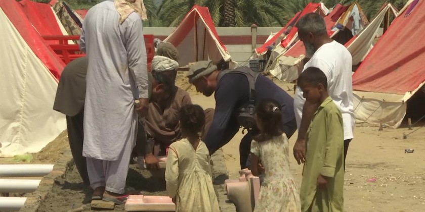 An official said the primary aim of setting up the school was to bring the children out of the shock of what they have gone through.  In Gambat city nearby, a village of around 400 tents has been set up by a few British volunteers who are providing the flood victims food, security, toilets, and other necessities of life.