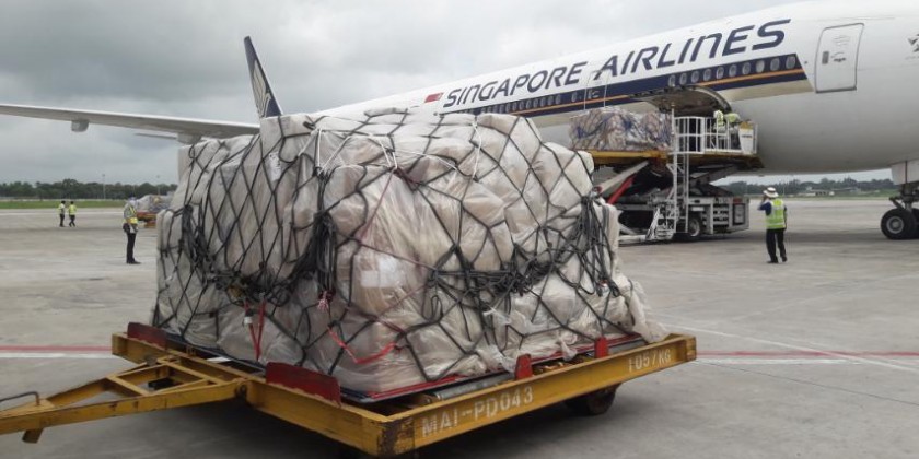 As a part of the program, the fourth special cargo flight loaded PPEs and medical related materials arrived at Yangon International Airport in the morning on 28 August.