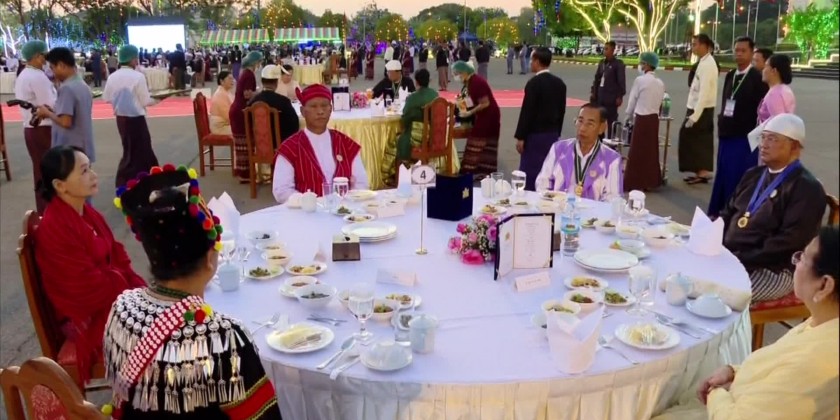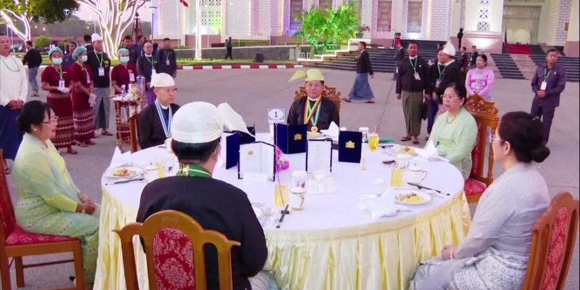 The dinner was also attended by the SAC Vice Chairman Deputy Prime Minister Vice Senior General Soe Win and wife, SAC Secretary and wife, the SAC Joint-Secretary and wife, SAC members and their wives, members of the Advisory Body of SAC, retired senior military officers, Union ministers, Union level officials and their wives, senior military officers and their wives, the advisers to the SAC Chairman, the commander of Nay Pyi Taw Command, deputy ministers, region and state ethnic affairs ministers and economic affairs ministers, leaders and representatives of NCA signatory EAOs, chairmen and representatives of political parties, MSME entrepreneurs from regions and states, ethnic cultural troupes from regions and states and invited guests.