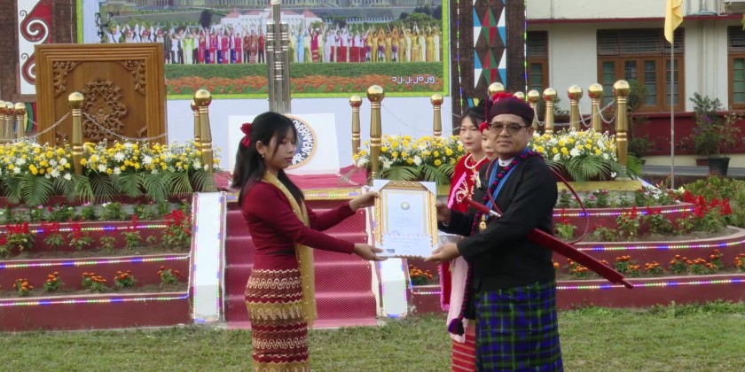 Subsequently, the State Chief Minister, the State Chief Justice, Commander of North Command, and officials presented certificates of honor and cash awards to students who won prizes in the High shool-level and basic education level essay, poetry, and short story competitions held in honor of the 78th Anniversary Union Day.