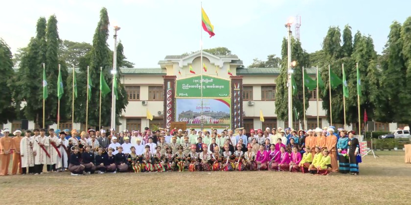 The 78th Anniversary Union Day commemorative flag-raising ceremony and message-reading event were held on the lawn in front of the State Government Office in Myitkyina, Kachin State on February 12.