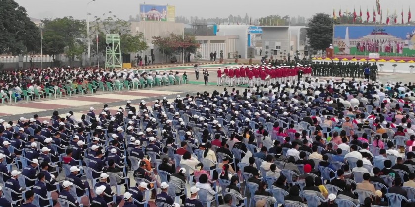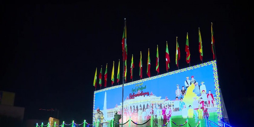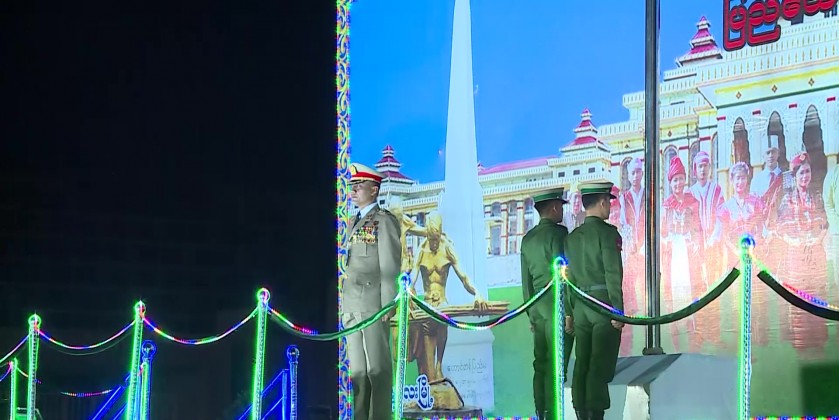 The ceremony of State Flag hoisting and reading out message marked the 2024 77th Anniversary Union Day was held the lawn of Mandalarthiri Sports Ground in Chanmyathazi Township of Mandalay Region in the morning on 12 February. First, the State Flag hoisting ceremony of 77th Anniversary Union Day was held at 5:30 AM and attended by the region minister for security and border affairs Col. Nay Lin Soe, region ministers.